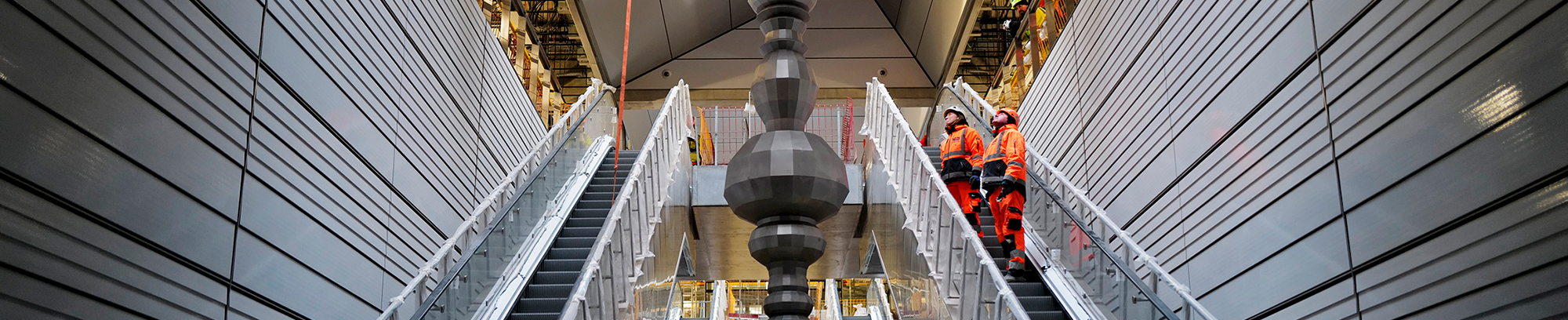 We meet in the hall under the clock at Hovedbanegården, after which we stop at all five stations towards Copenhagen South. We look at both art installations and the urban spaces above.